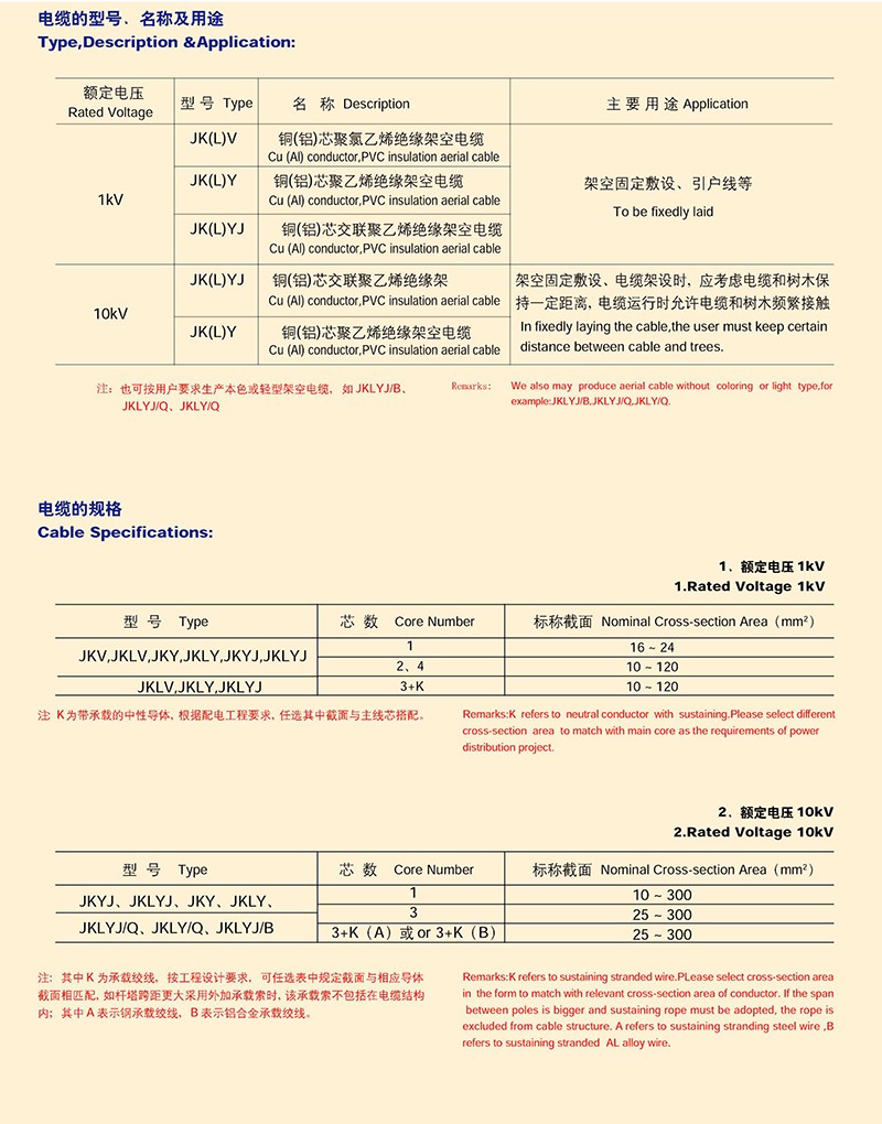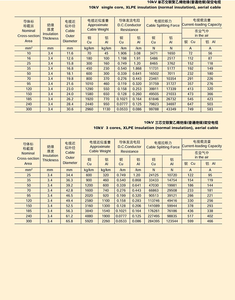 額定電壓10KV以下架空J(rèn)緣電纜